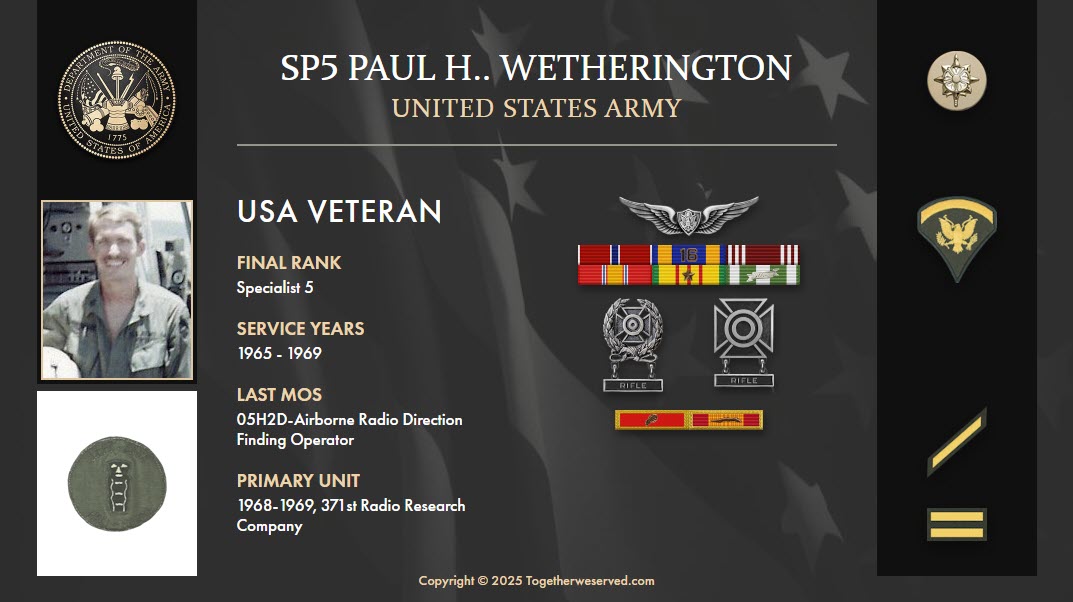 It's pulling up old memories and names I had forgotten. It's a great way to honor those who served, and I am excited to dig through my family's history of those who served. It's also a great place that acts as a repository for my records, reflections, photographs, and documents that will live on after I am gone. I had forgotten many of the things I did and the service schools I attended. I created a page for my brother, who died in an accident at Fort Hunter Liggett in 1973. A retired Army First Sergeant wrote me a message letting me know he remembered my brother as they were roommates at the time of my brother's death. It's a great way for us to remember each other, get to know others, and honor those who went before us.